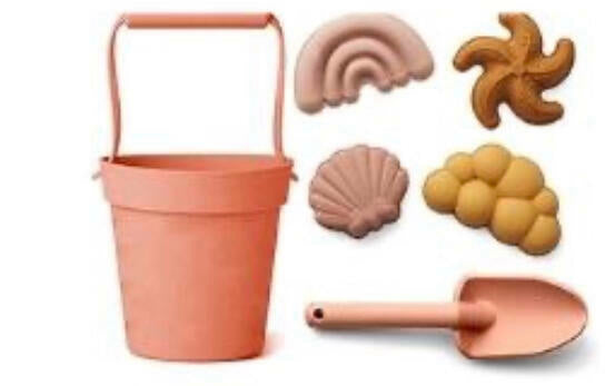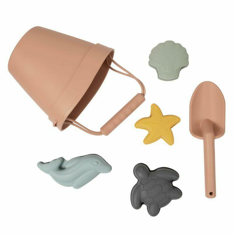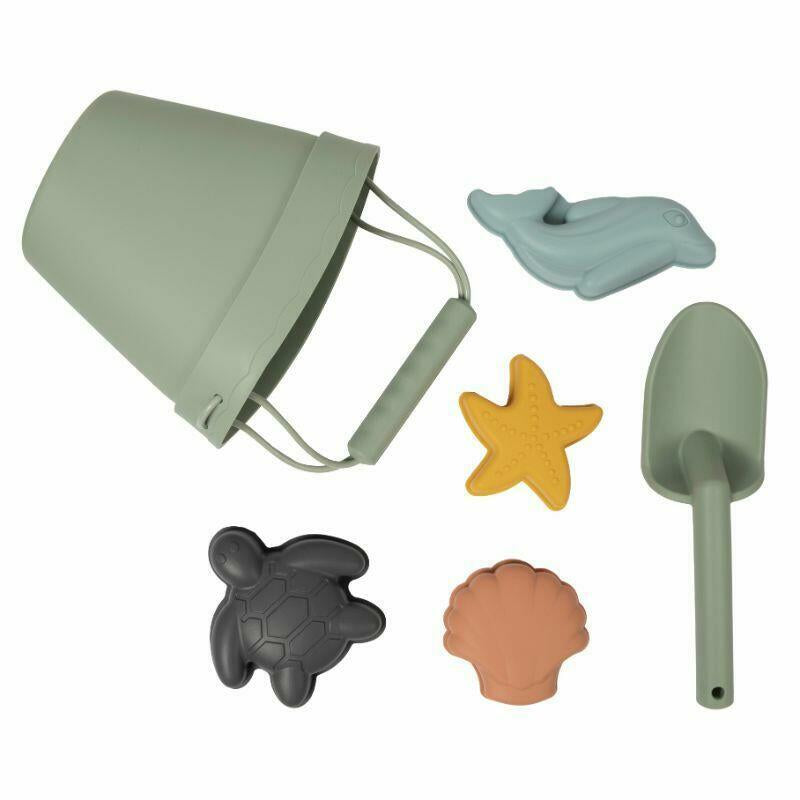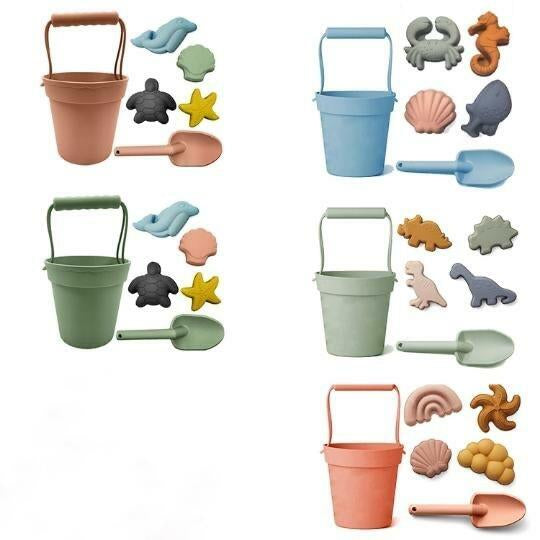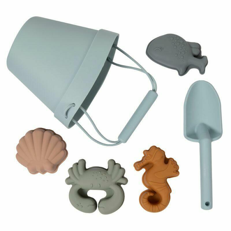 Includes, 1 x Bucket with handle, 1 x Shovel, and 4 x Moulds shaped like your favorite sea animals.