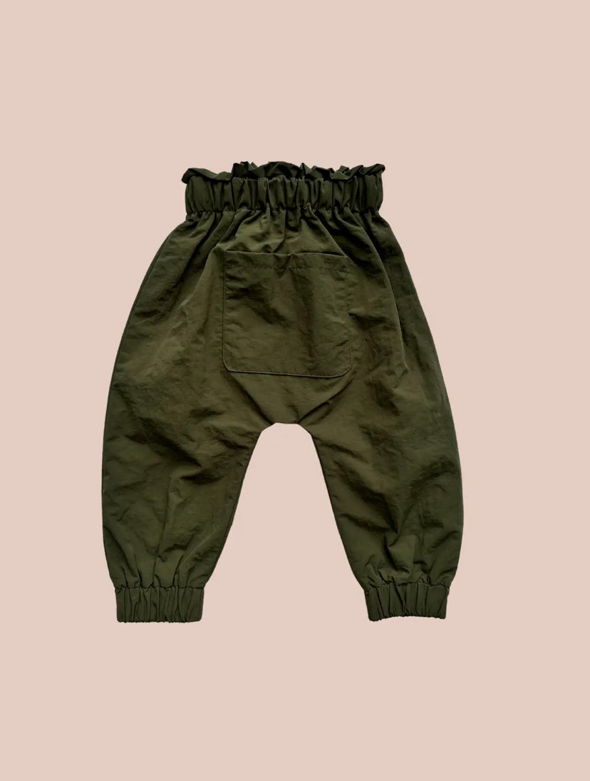 the ultimate rain pants for all children. velvety soft, lightweight, oh so compact and water resistant for messy play and adventures. 100% recycled nylon water resistant lightweight and quick drying harem style leg elastic waist and ankle signature inbuilt pocket