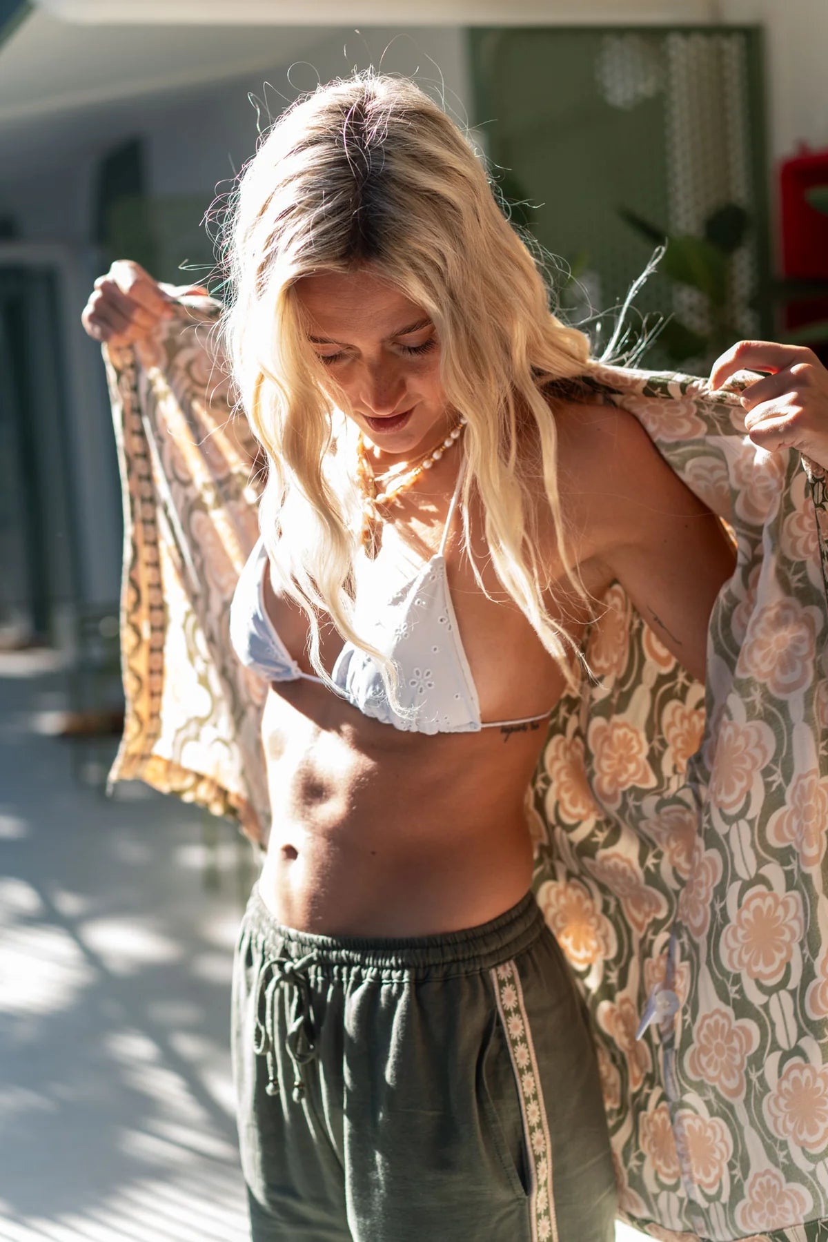 Style it open over your favourite mini dress as a lightweight layering piece. Perfect for transitional days, sun-drenched afternoons, or relaxed weekend moments.